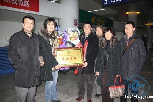 在机场迎接参加表彰会归来的我会代表 (王林 摄)