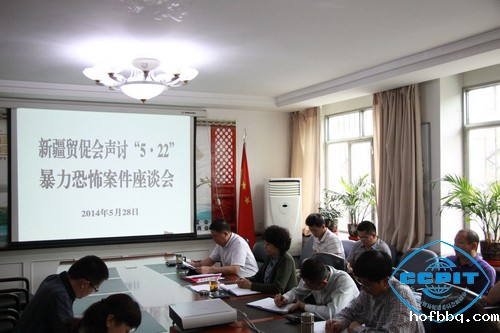 5月28日,新疆贸促会召开了机关全体干部大会,对5月22日发生在乌鲁木齐市沙依巴克区公园北街早市的严重暴力恐怖案件,表示强烈愤慨和谴责,一致认为暴恐分子在乌鲁木齐早市滥杀无辜、手段凶残,其反人类、反社会、反文明的罪恶行径令人发指。他们的行为代表不了任何民族,也代表不了任何宗教,他们是新疆各族群众共同的敌人。大家纷纷表示,要坚定政治立场,增强大局意识、责任意识、忧患意识,按照中央和自治区党委指示精神,自觉站在反恐维稳斗争的第一线,带头维护民族团结和社会稳定,坚决与一切破坏民族团结、社会稳定和祖国统一的暴恐分子斗争到底,构筑新疆反恐维稳的钢铁长城。