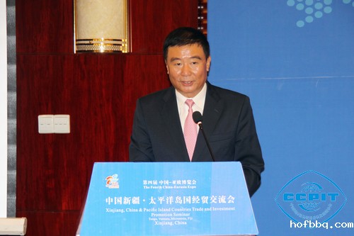新疆贸促会党组书记、会长王克林在中国新疆•太平洋岛国经贸交流会上作了“加强贸易促进工作 推动中国新疆和太平洋岛国经济合作走上新台阶”的发言。王克林首先表达了新疆贸促会愿意与太平洋岛国之间加强沟通并建立良好的合作关系。并就今后进一步推动合作,促进贸易畅通提出三点建议:一是深入开展贸易促进交流与合作。组织中国新疆与太平洋岛国经济贸易促进机构、商协会组织、企业及人士的互访,加强商协会组织间的合作,协助或联合举办各类经贸会议和展览等活动。二是加强中国新疆与太平洋岛国之间的商务协调。进一步加强各方商会组织的沟通与合作,加快建立健全商会间合作机制和定期会晤机制,使我们的商务合作由理论层面转入操作性强的务实合作。三是提升贸促会的服务空间。我们将主动与各方企业构建互动平台,主动拓展法律仲裁、法律咨询、出证认证、信息咨询等各种服务功能,提供长期的专业服务,在促进贸易发展、资本利用、技术引进及其它各种形式的经济技术合作,为经贸洽谈及各种形式的交流与合作铺设平台。