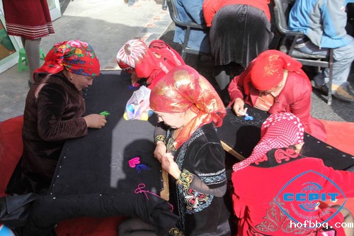 10月19日下午,恰提村村委会大院里举办了 “2014年恰提村妇女刺绣比赛”,这是村里有史以来第一次自己举办的刺绣比赛,全村17名妇女的20余幅作品参赛。