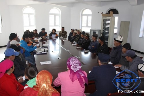 住村工作组为全体参会人员发放了《新疆维吾尔自治区民族团结进步工作条例》(维汉版本)《恰提村村规民约》(维汉文字),牛敏组长组织大家对有关内容进行了学习,工作组成员阿依特肯•阿合买提将学习内容用柯语口述翻译给大家。牛敏组长说:“8月30日,自治区党委陈全国书记组织召开了自治区党委常委(扩大)会议和自治区稳定工作会议,陈全国书记强调尤其要做好群众工作。当前,正值我国在杭州召开G20峰会,为支持办好这次高规格的国际性会议,我们要继续做好做实村里的各项维稳工作,我们只有也必须依靠群众、联系群众、团结群众,才能构筑起维稳工作的钢铁长城和铜墙铁壁”。