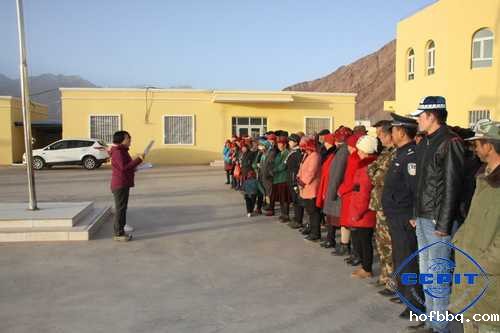 早晨10时在恰提村村委会大院里工作组全体成员、村“两委”班子成员、村警务室村警、爱国宗教人士、民兵、“四老”人员、农村党员以村民代表共100余人共同唱着国歌举行了庄严的升国旗仪式。仪式结束后新疆贸促会住恰提村工作组组长牛敏向大家详细的宣讲了开展“民族团结一家亲”活动的重要意义和活动内容。