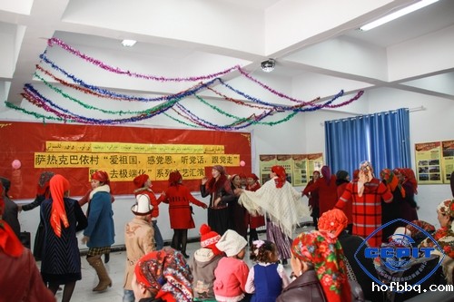 诺鲁孜节,是柯尔克孜族、维吾尔族、哈萨克族等少数民族的民间传统节日,在这个洋溢着春天的气息、承载着新的希望的节日即将到来之际,新疆贸促会驻乌恰县乌鲁克恰提乡萨热克巴依村工作队,充分发挥引领作用,广泛调动村民积极性,携手村民举办了一场“爱祖国,感党恩,听党话,跟党走”暨“去极端化”文艺汇演,让村里的节日更加热闹精彩。工作队和村民共同欢庆节日,寓教于乐,对村民进行宣教教育。本场演出精心准备了独唱、弹唱、独舞、双人舞、歌伴舞、集体舞等节目,整场演出精彩纷呈,盛况空前,现场不时爆发出热烈的掌声,村委会成了欢腾的海洋。
